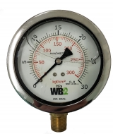 Manômetro analógico 100mm glicerinado WB2 0/300 kgf/cm2/30MPa Caixa Inox internos latão com certificado de calibração RBC
