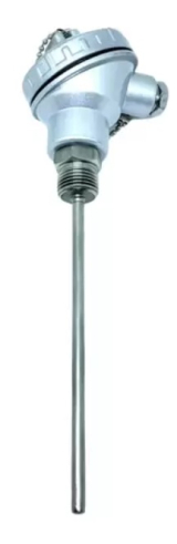 Sensor tipo PT-100 à 3 fios com cabeçote em alumínio à prova de tempo, haste em aço inox AISI-304 6,35x150mm com conexão 1/2"NPT-M.